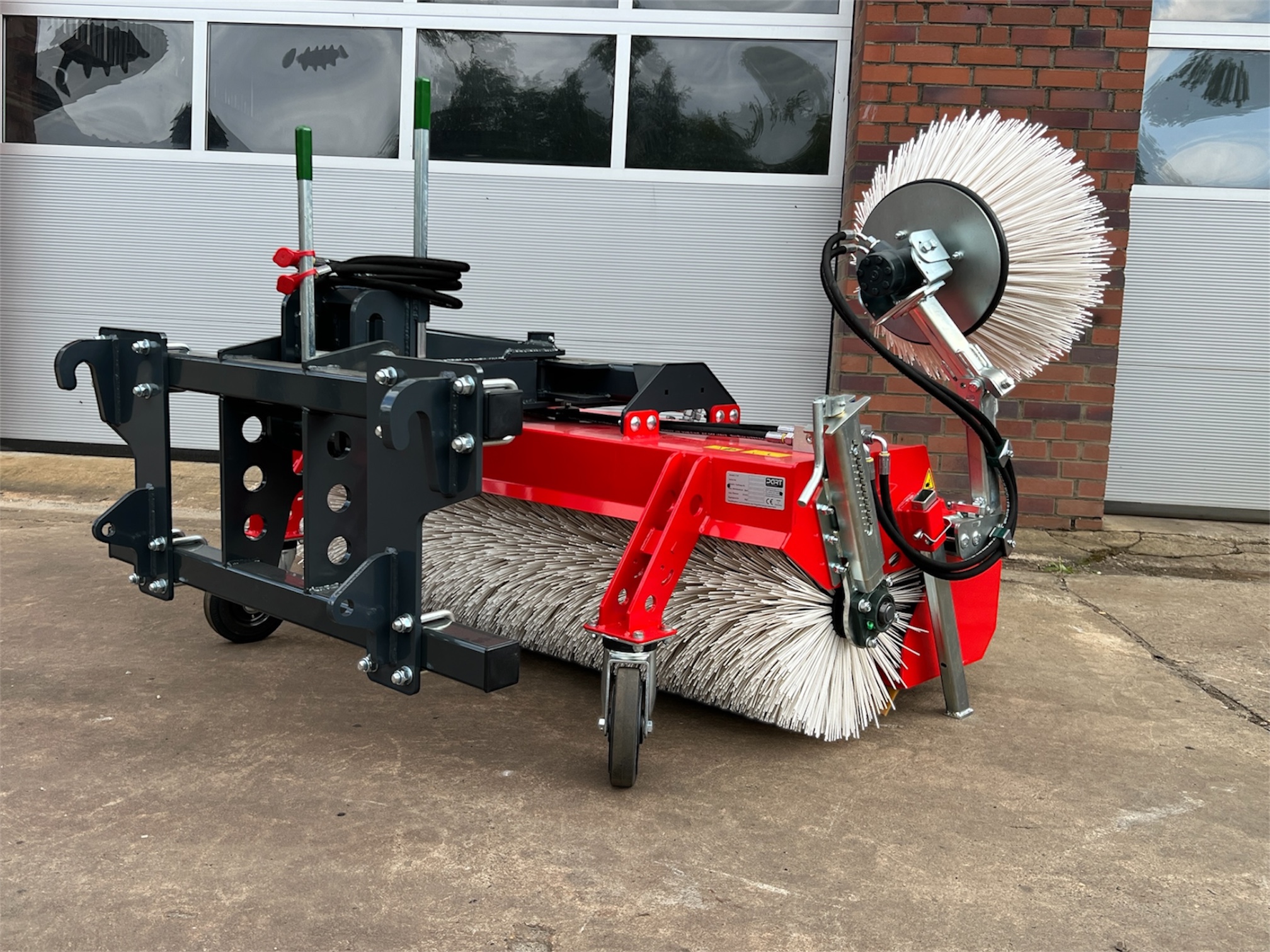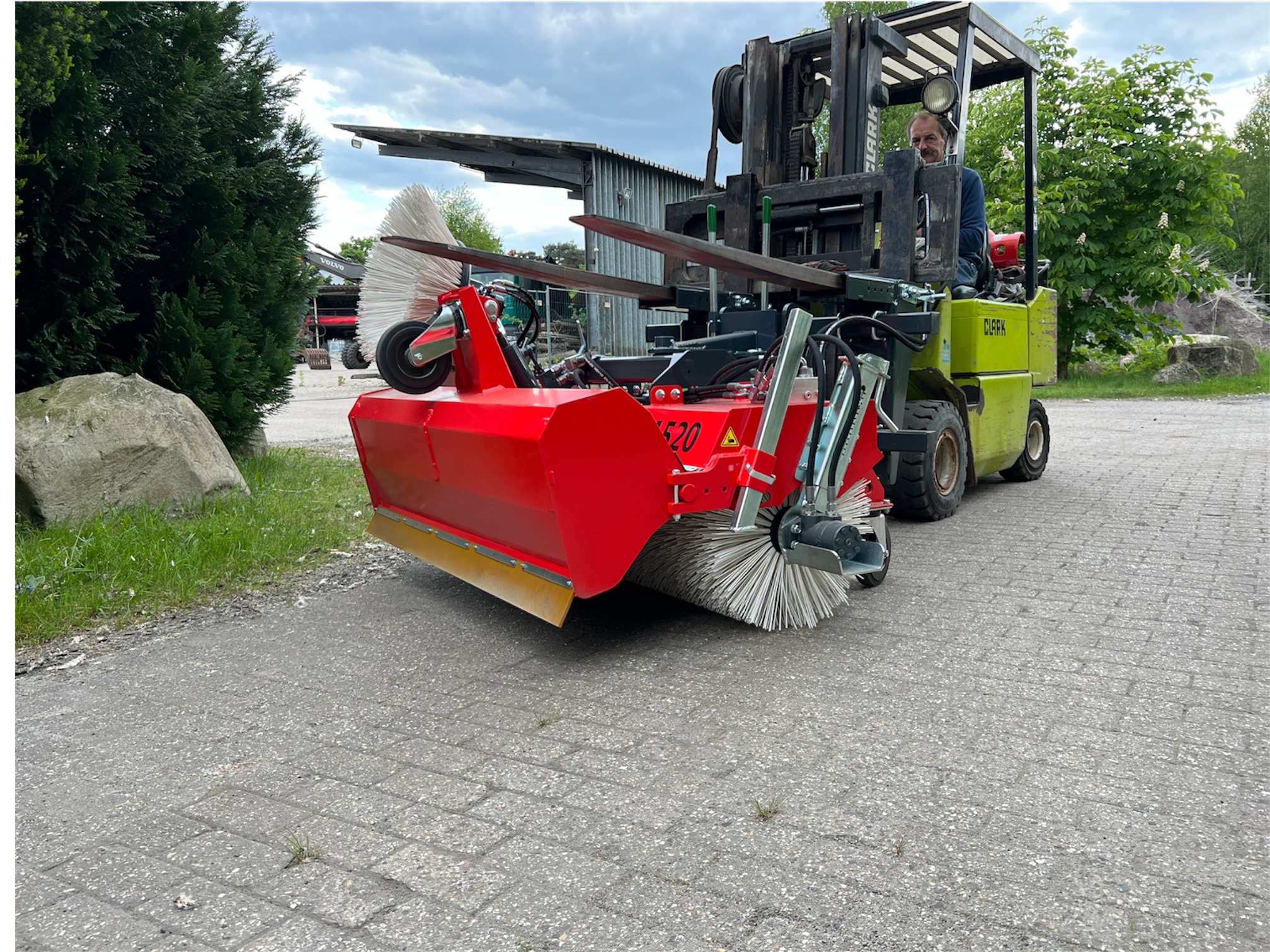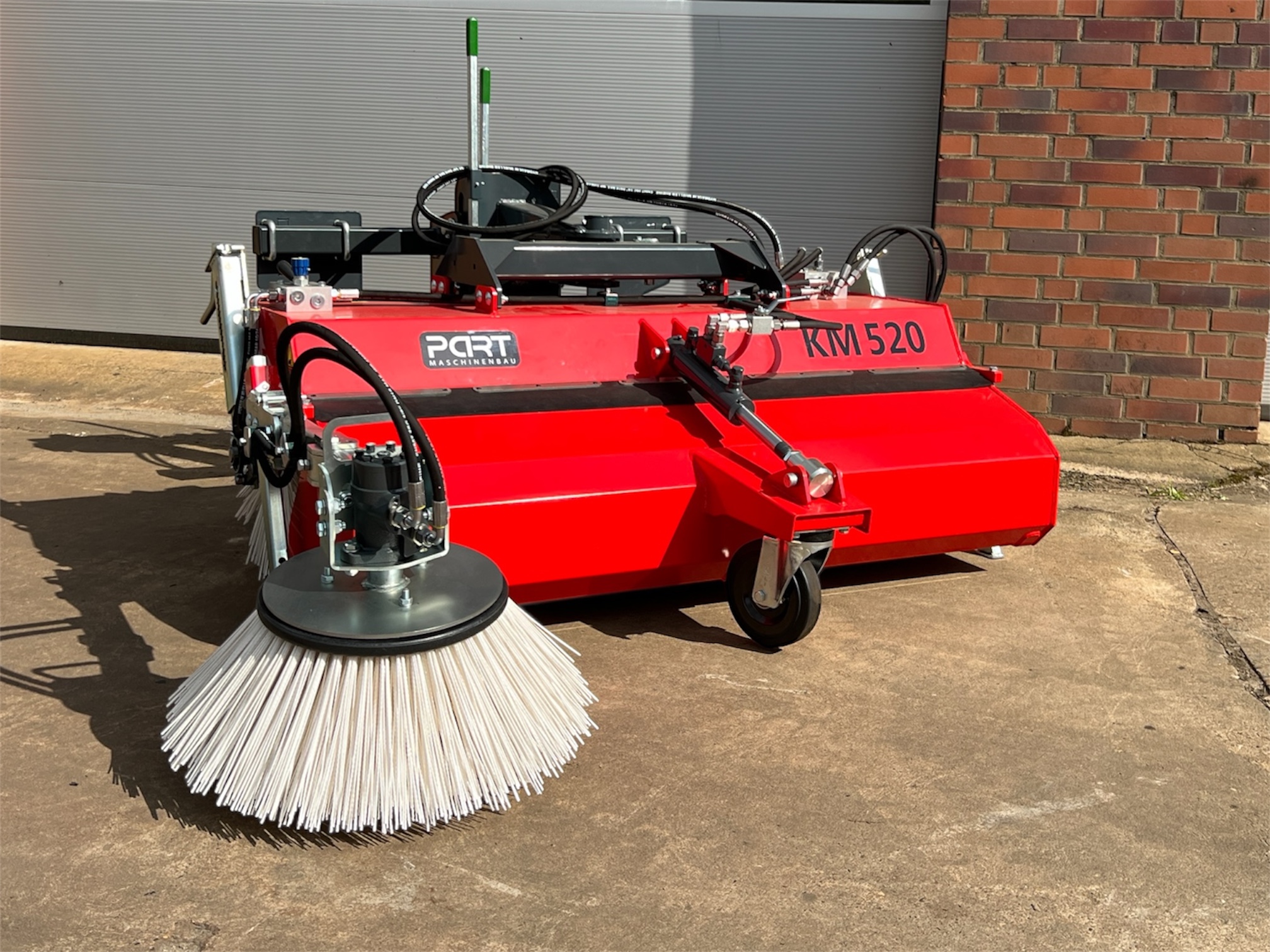 Die Kehrmaschine KM 520 ist für qualitäts- und kostenbewusster Anwender konzipiert. Dabei eignet sich die Maschine zur Beseitigung von Verunreinigungen auf allen befestigten Flächen. Sie ist ideal für das Kehren von Plätzen, Straßen und Parkplätzen mit Pflasterstein-, Asphalt- oder Beton-Oberfläche. Dank der Möglichkeit des Ankuppelns an einen Gabelstapler, Schlepper oder Lader kann die Maschine sowohl in der Landwirtschaft, im Gartenbau, als auch in Kommunal- oder Industriebetrieben eingesetzt werden. Dabei sorgt der Optimierte Kehr-Keil für einen gleichmäßigen Abstand der Kehrwalze zum Behälter. Auf Wunsch kann die KM 520 mit einem Schmutzsammelbehälter ausgestattet werden. Dabei sind die PU-Leiste das 3. Stützrad und die hydraulische Entleerung mit Freikehrmodus serienmäßig.